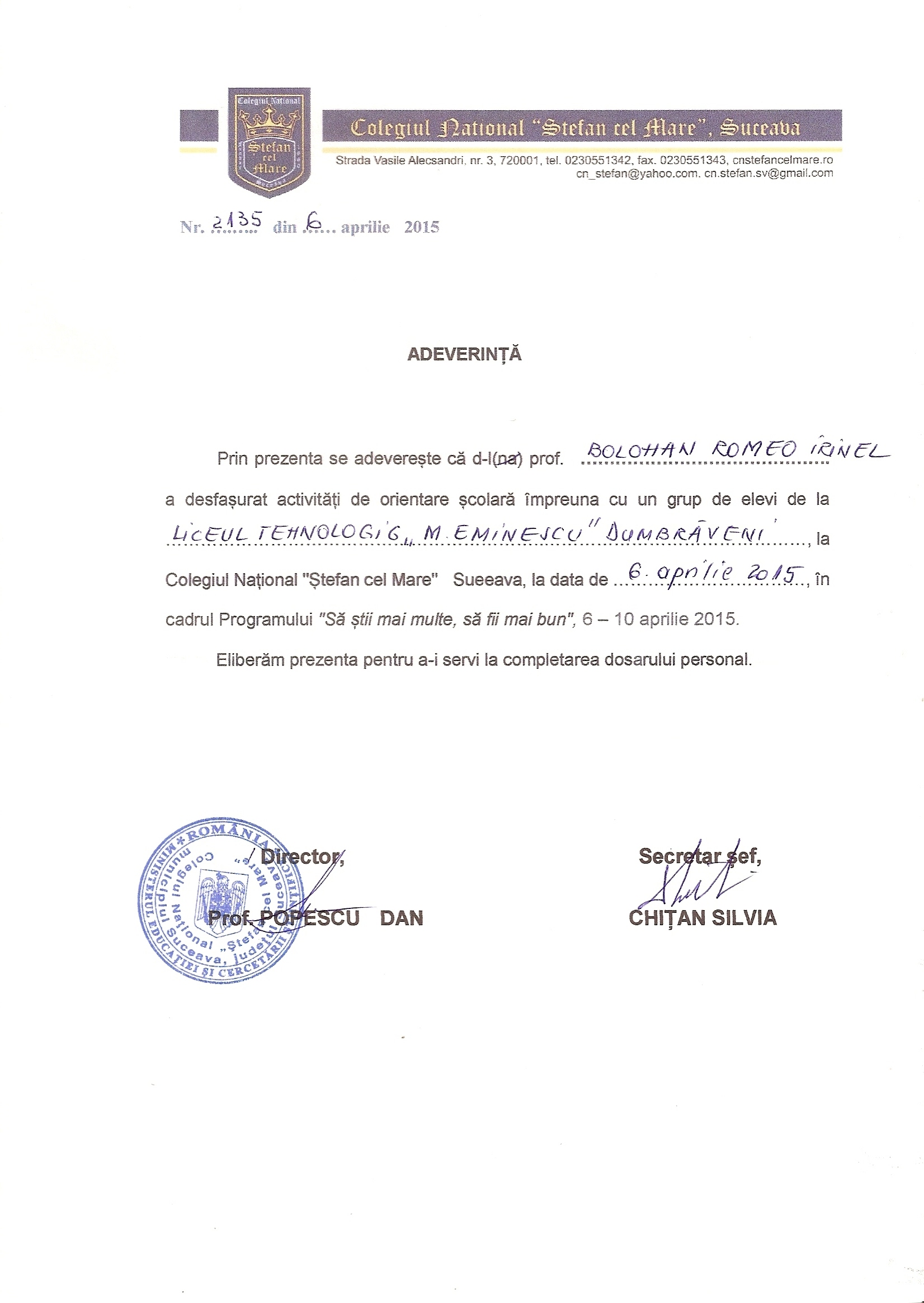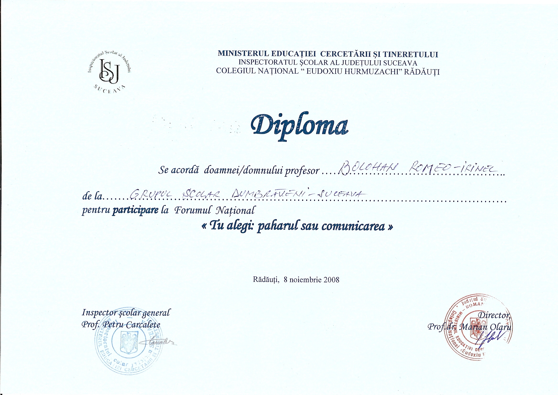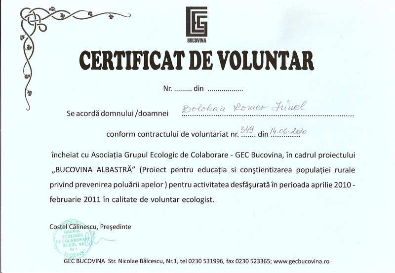 certificat Voluntar CCDG ROMEO BOLOHANROMEO BOLOHANROMEO IRINEL BOLOHAN_LICEUL TEHNOLOGIC MIHAI EMINESCU_BOTOSANI (1)Adeverinta participare activitati voluntariat 2013romeobolohan@yahoo.com