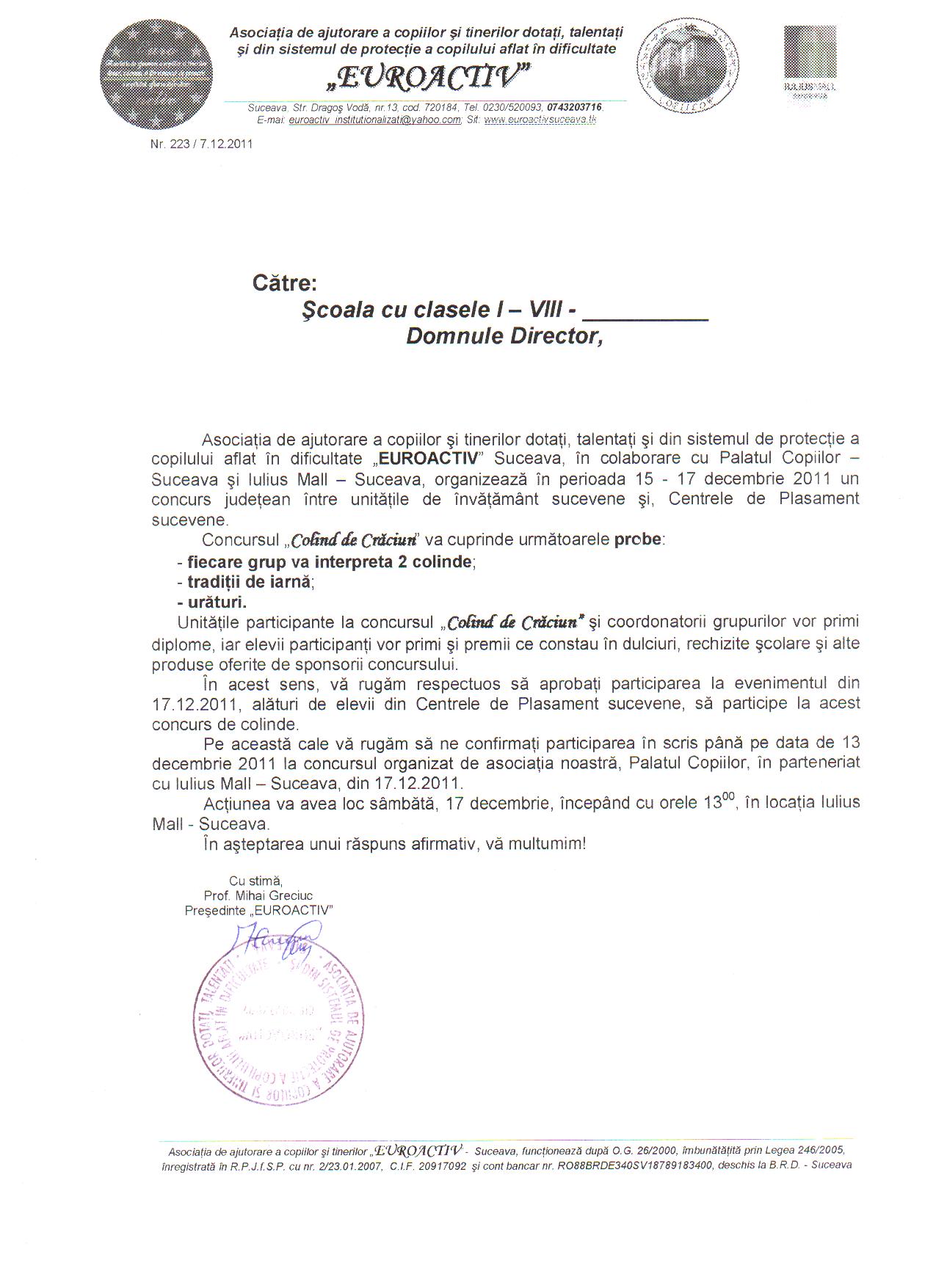 Invitatie scoli GCE 2011
